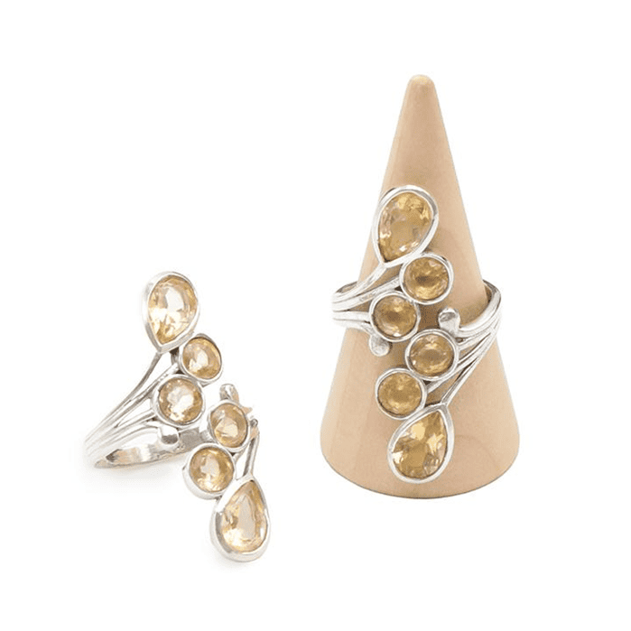 Bague réglable en argent 925 et en Citrine naturelle facettée, de qualité AAA.